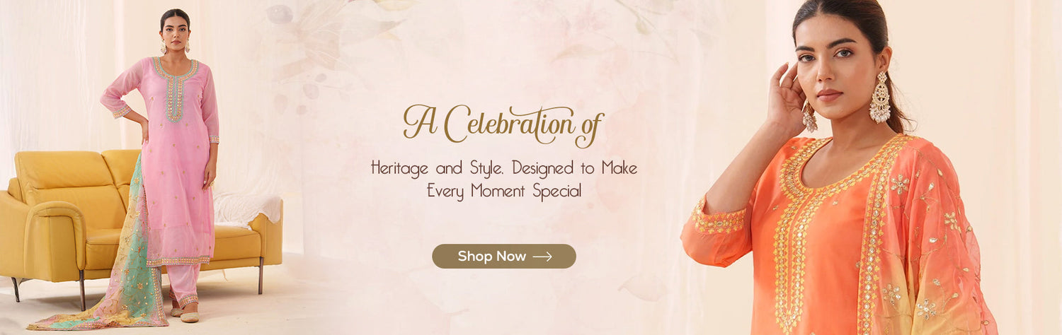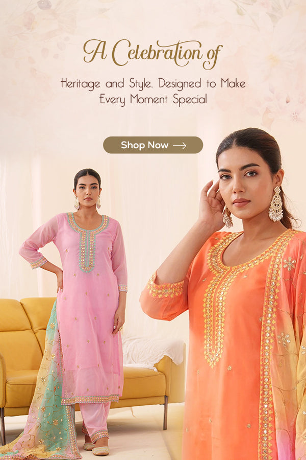 Floral Embroidered V-Neck Silk A-Line Kurta & Trousers With Dupatta