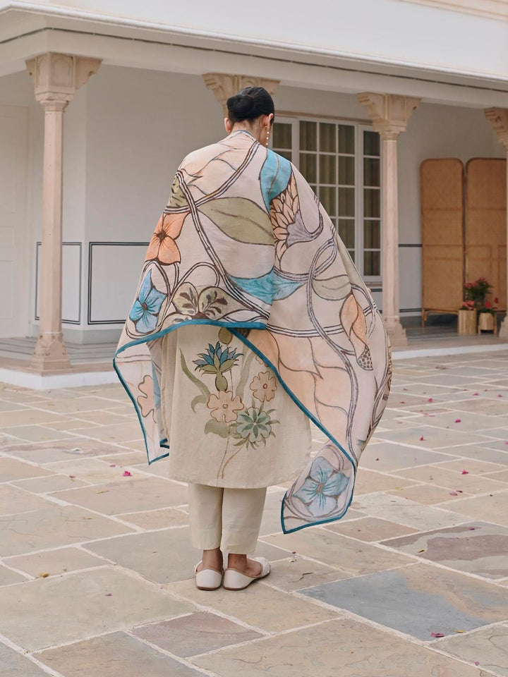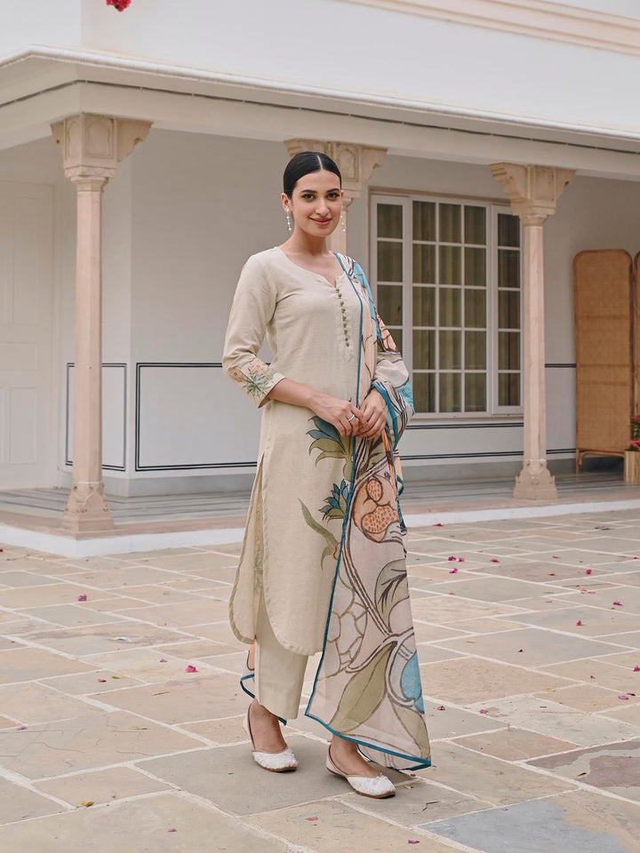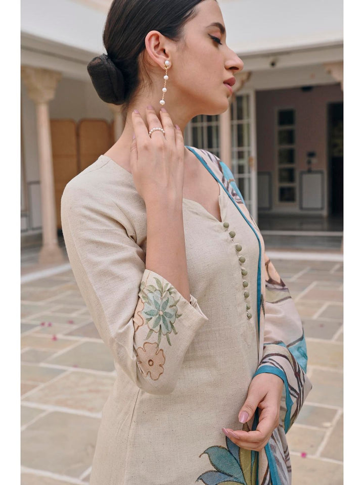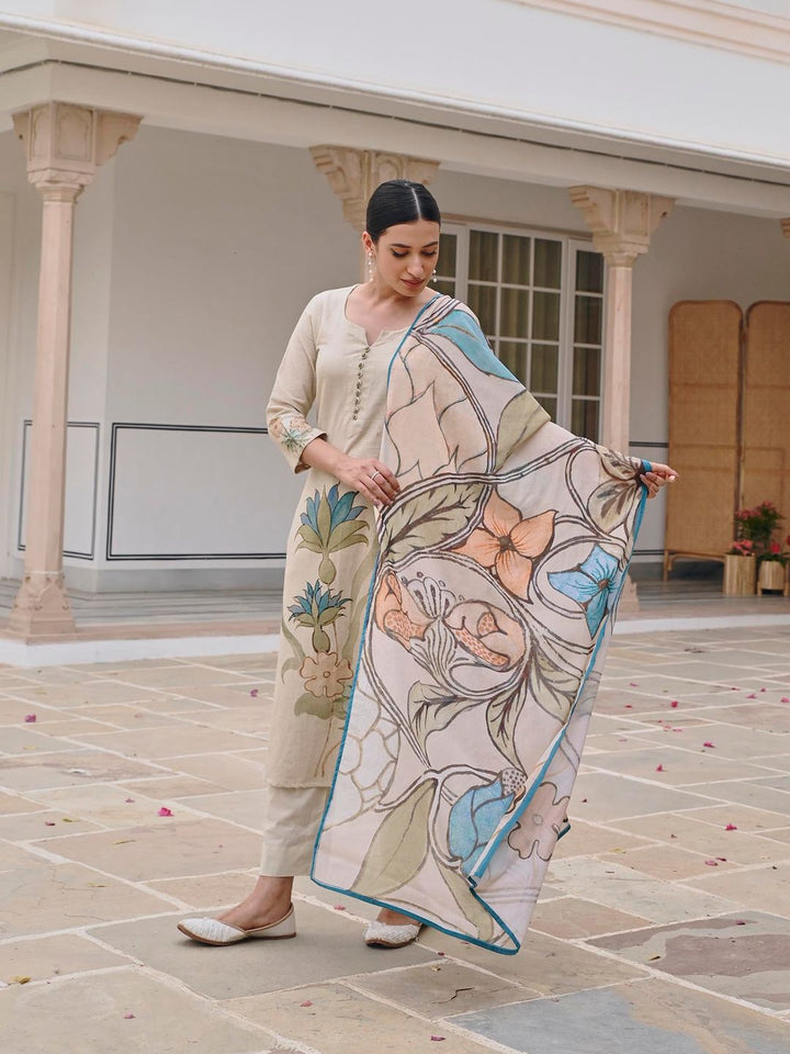 Blue Handloom Cotton Straight Kurta with Pant and Dupatta (Set of 3)