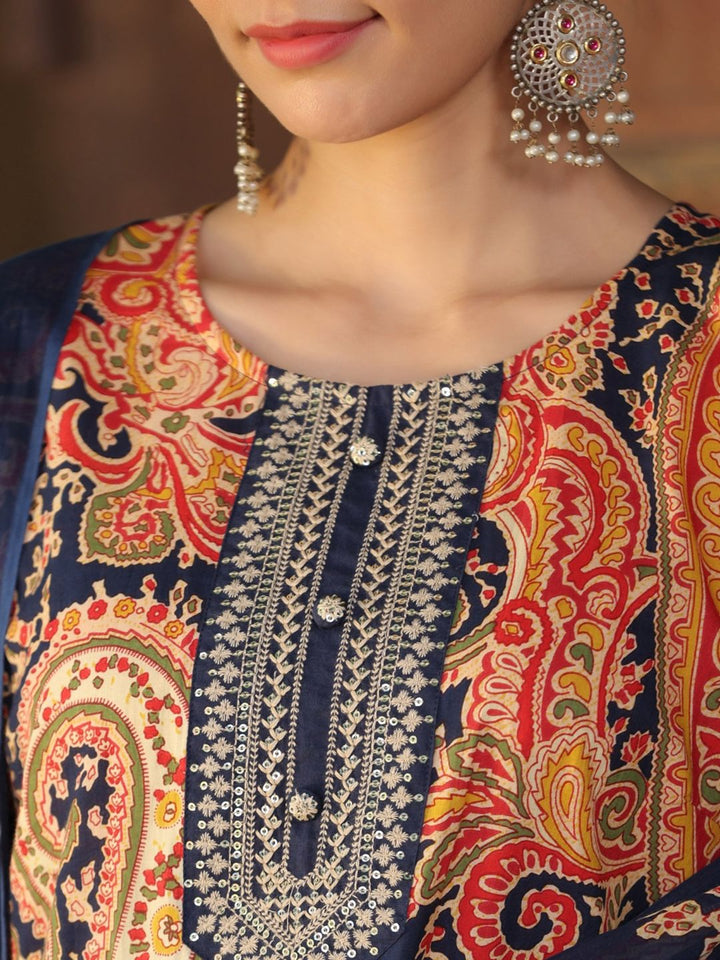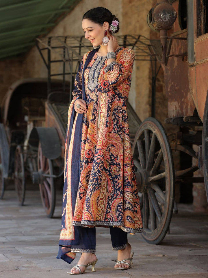 Blue Paisley Printed Kurta with Trousers & Dupatta (Set of 2)