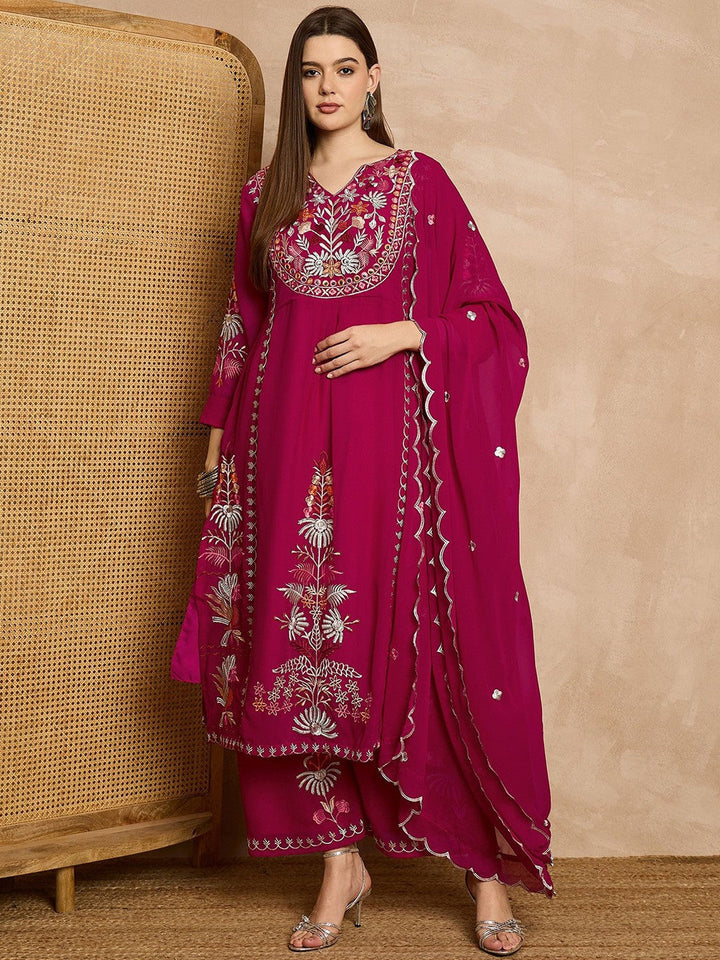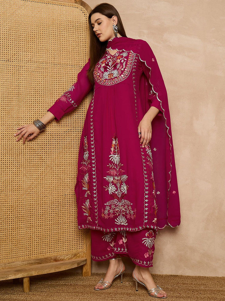 Women Floral Embroidered Regular Thread Work Kurta with Palazzos & With Dupatta